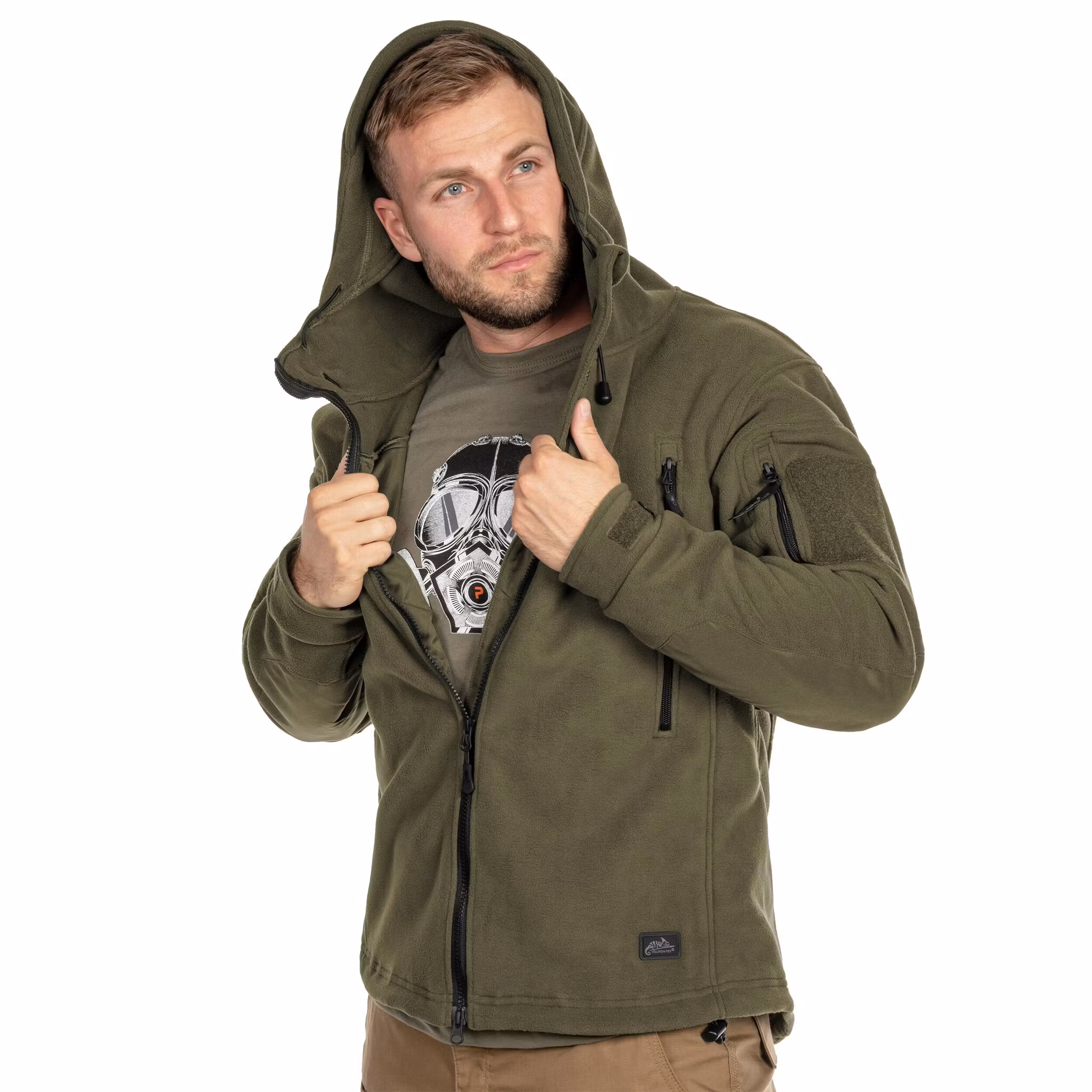 A zip-up fleece jacket in Olive Green that provides thermal insulation in low temperatures while allowing excess heat and moisture generated during physical activity to escape. The Helikon-Tex Patriot is made of high-quality fleece with a weight of 380 g/m2. Thanks to its generous cut, it can be worn over a thinner sweatshirt and additional insulating layers. The back section is slightly extended to protect the kidneys from wind, while the entire jacket remains short enough to allow easy access to pockets and gear carried on the trouser belt.