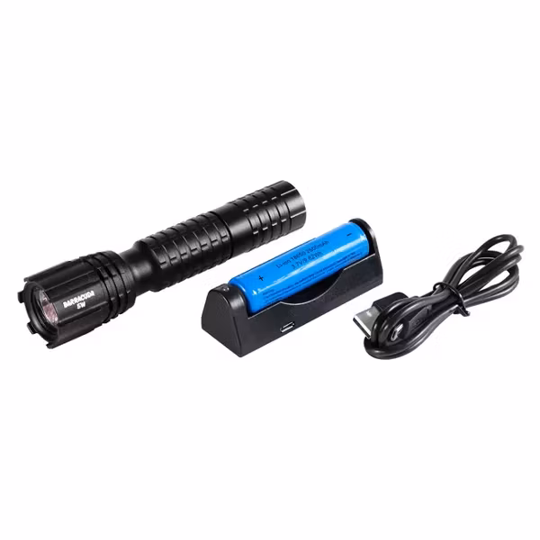ESP Tactical Police Flashlight BARRACUDA 5-R with cree chip and a charging adapter with micro USB connector.