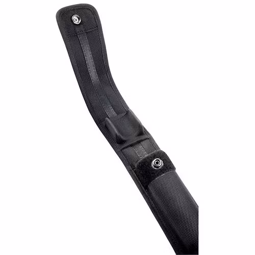 Cover T Scabbard är ett "mjuksidigt" men ändå tufft, ballistiskt vävt fodral med lock som säkras med kardborre och ett snäpplås. För att öppna locket tar du helt enkelt tag i nedre kanten av locket och drar uppåt. Ett fjädrande foder i fliken hjälper till att hålla locket ur vägen när du drar batongen.