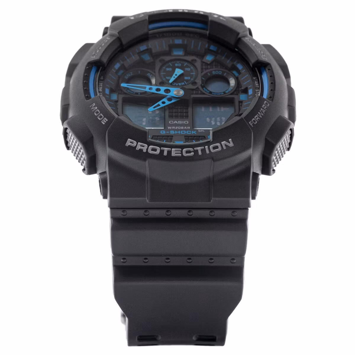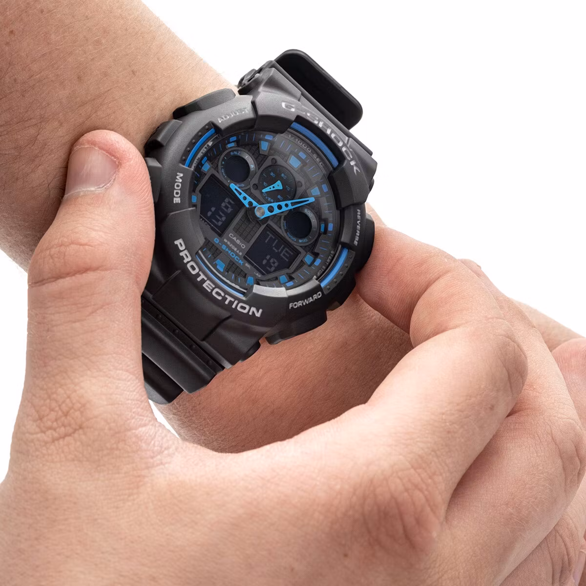 The use of the G-Shock system and a carbon-reinforced case increases the watch’s resistance to shocks and mechanical damage. The mineral glass covering the dial has a Mohs hardness level of 5.
