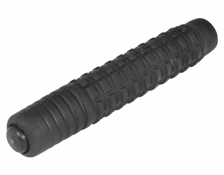 Räfflat gummihandtag som ger mycket säkert grepp. Smart 360graders justerbart hölster i svart polymer medföljer. Batongen kan hölstras i utfällt läge.