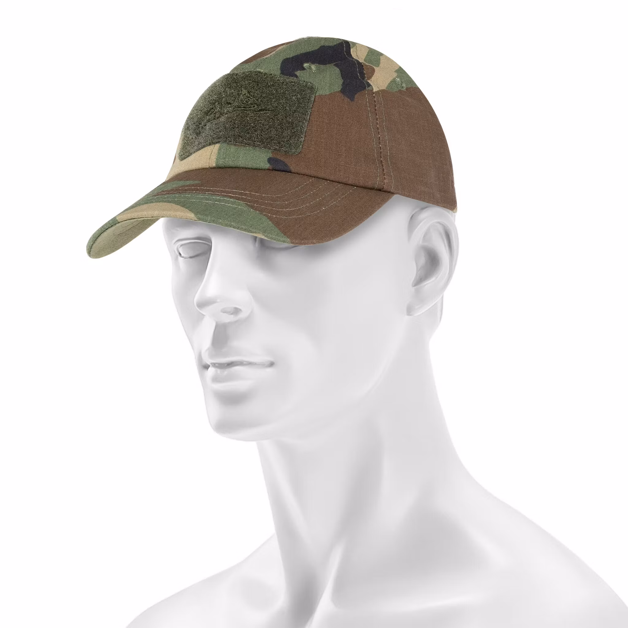 Justerbar keps utrustad med en uppsättning av mjuka kardborrband för ID patchar och andra objekt. Avsedd för användning i varmt väder. Med sitt djupgående snitt så fungerar dem med olika LE/Mil huvudbonads system.