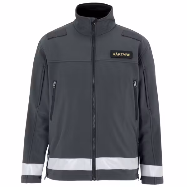 Snygg softshelljacka i kortare modell för väktare, försedd med emblem väktare vänster bröst.