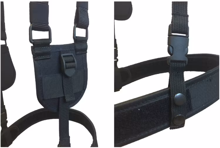 Den höga snittvikten på dagens utrustningsbälten inkluderat; tjänstevapen, magasin, fängsel, komradio, pepparspray, ficklampa samt batong m.m. medför med tiden ofta ryggproblem med klämda nerver och skavsår. Med denna avlastningssele så fördelar ni vikten från bältet till axlarna vilket resulterar i mindre skador samt en bättre arbetsmiljö. OBS! Bältet ingår ej!