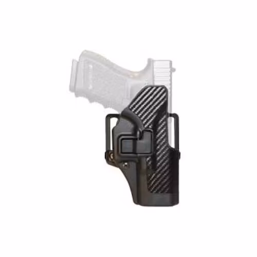 Populärt hölster för dolt bärande (concealed carry). Passar Glock 19 och andra pistoler med liknande storlek och utseende. Utförande: Höger (RH). Blackhawk SERPA® CQC® Concealment Holster Carbon-Fiber Finish.