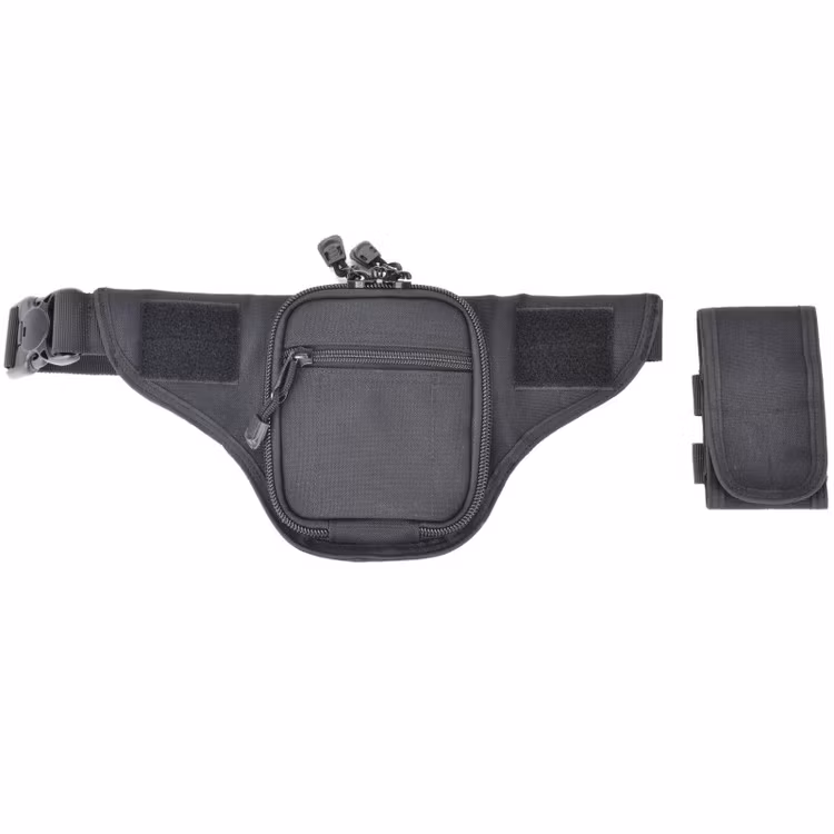Smaller spare magazines (e.g., Glock 26) or mobile phone (not suitable for smartphone) can be accommodated in the front zip pocket.