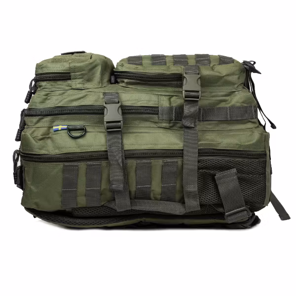 Nordic Army Assault ryggsäck med ett snyggt 3D PVC märke. Jämfört med våra andra Assault ryggsäckar är denna modell utrustad med 2st nätfickor, avsedda för exempelvis vattenflaskor. Väskan har en total volym på 28L och passar utmärkt för en mindre packning. Utrymme för ett par skor, 2st T-shirts, 2 par byxor, handduk och små prylar såsom nycklar, pennor, multiverktyg mm. Hela väskan är tillverkad av ett vattenavvisande kraftigt material och är mycket tåligt.