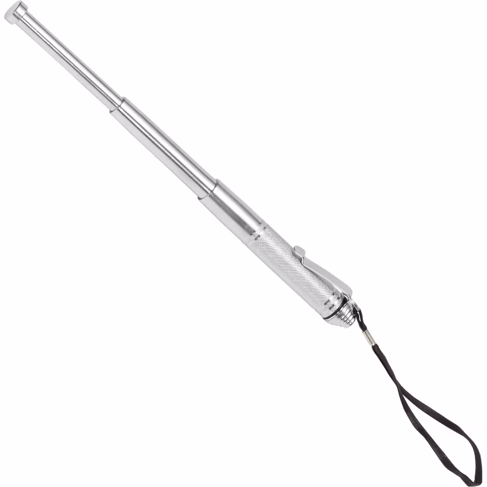 Denna modell heter Mini och är tillverkad av kraftigt stål. Kommer utrustad med både bältesclip samt handrem som säkrar batongen i handen. Rekommenderas!!