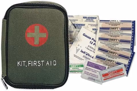 Rothco’s Military Zipper First Aid Kit includes 20 essential first aid medical supplies and can be stored right on your belt for swift access while on the go.