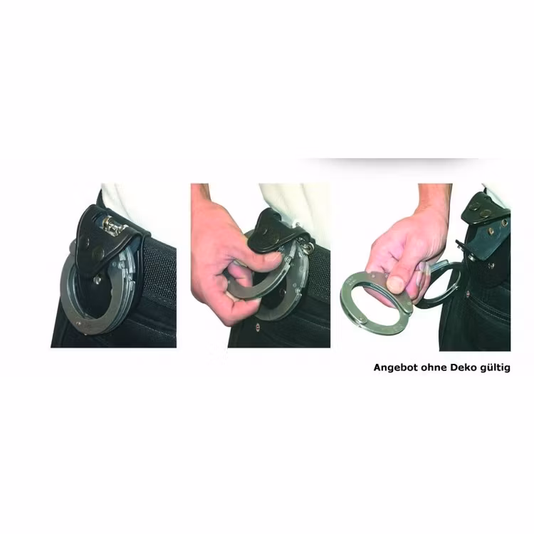 Handfängslen hängs på en integrerad krok på insidan av fickan. Mycket snabbt och lätt att lossa sina fängsel. Passar de flesta vanliga standard fängsel med kedja. Passar bälten med en bredd upp till 58mm. Rekommenderat är att bära denna hållare på framsidan kroppen.