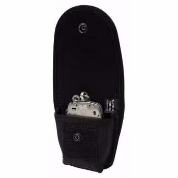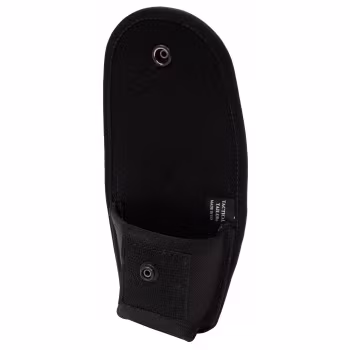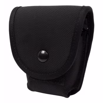Holds single pair of handcuffs (handcuffs not included) flap secures with heavy duty steel snap Constructed from 1050 denier ballistic nylon Attaches to duty belt or modular gear with two short MALICE Clips® Dimensions: 4.5" x 3.5" x 1.5" Available in Black
