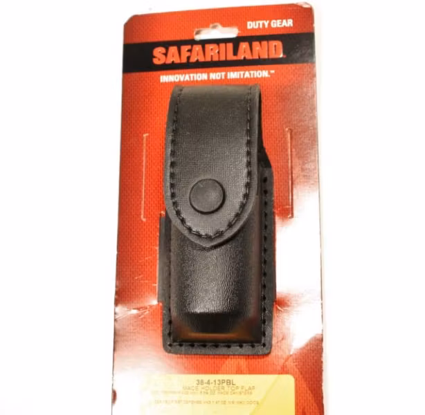 OC-hållare från Safariland med lock i svart nylon för bälte.