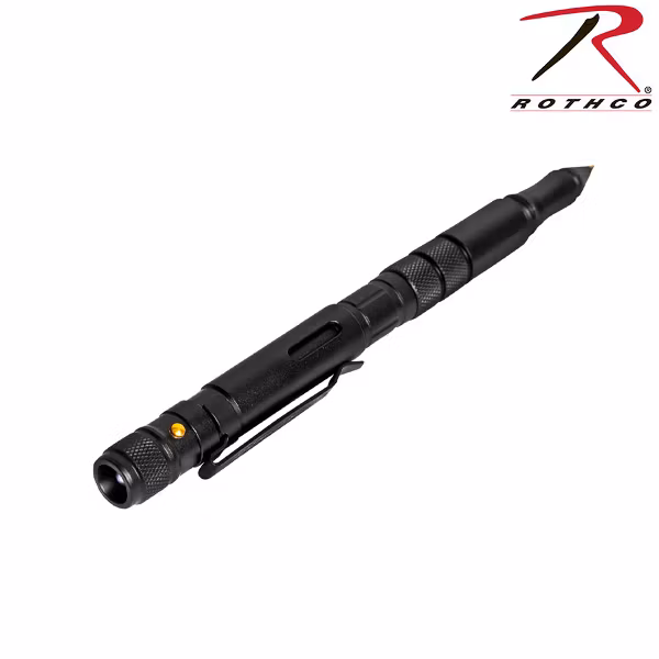 Taktisk penna från Rothco med flera olika funktioner förutom penna såsom ficklampa, knivblad, glaskrossare, visselpipa, flasköppnare samt fickklämma. Rekommenderas!