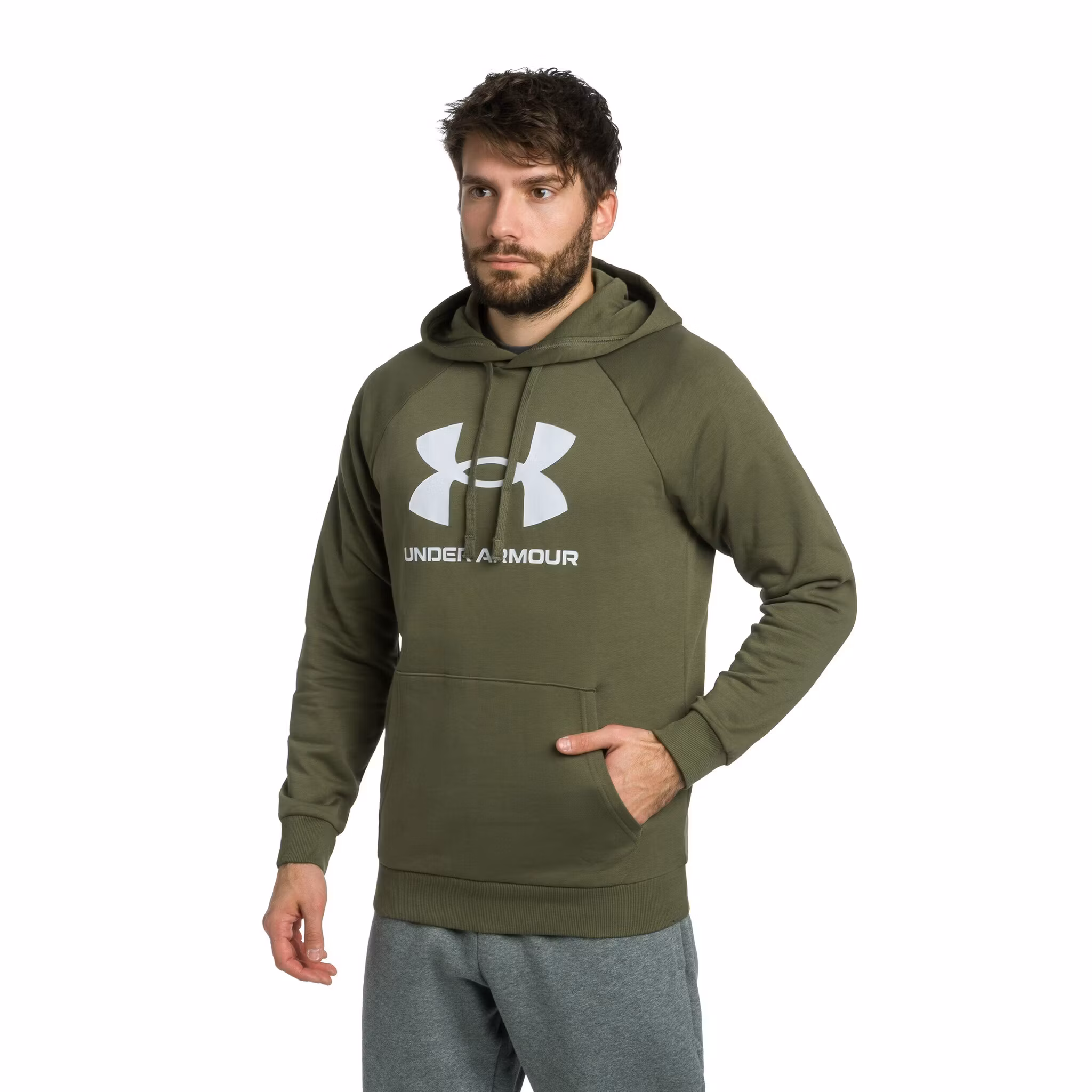 UNDER ARMOUR Rival Fleece Logo Sweatshirt - OD Green/White