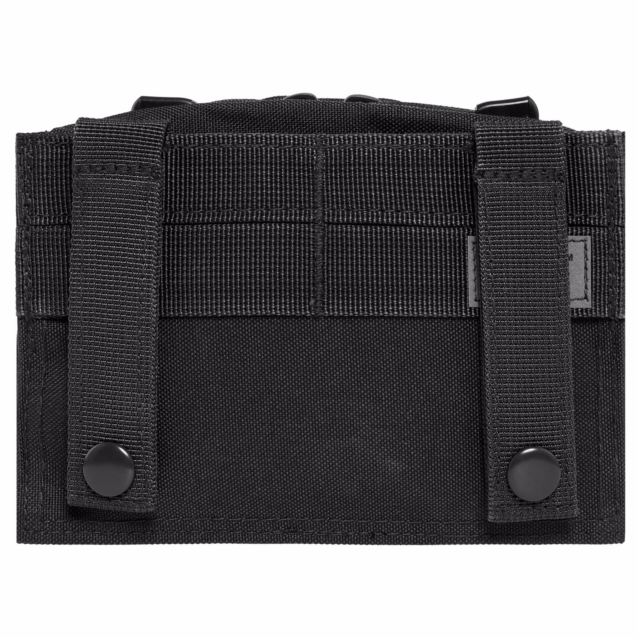 On the front wall of the pocket there are MOLLE system tapes covered with a layer of hook-and-loop, allowing you to attach a patch or other accessories. Mounting to the belt is done by means of two button-fastened loops, compatible with belts up to 8 cm wide.