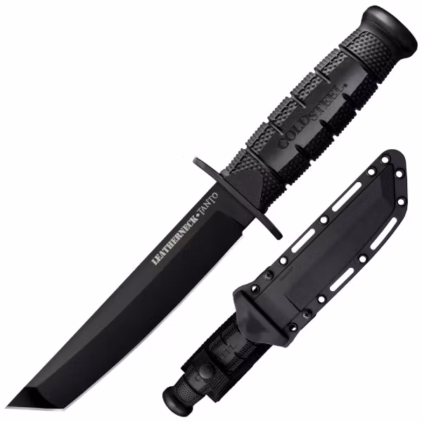 Leatherneck Tanto är en militärkniv med svart tantoblad från Cold Steel. Bladet är tillverkat i eggbeständigt Tyskt D2 stål. Knivskaftet är greppvänligt och halksäkert.