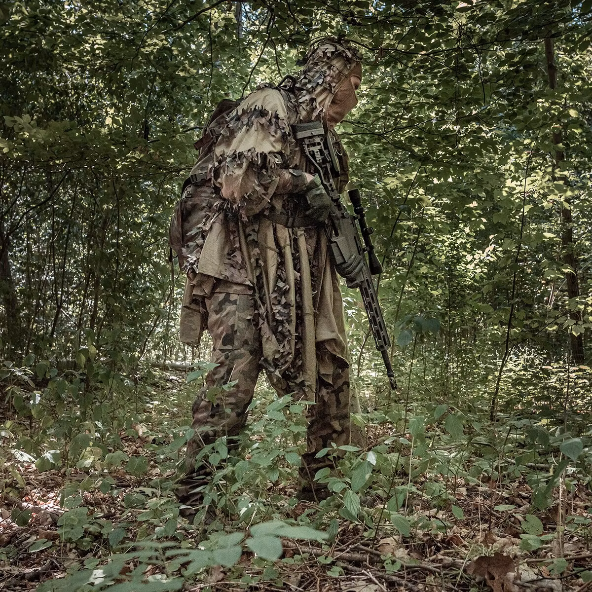 Ghillie poncho från Helikon-Tex. Använd ponchon som den är eller bygg ihop med flera och skapa ett stort camoöverdrag.