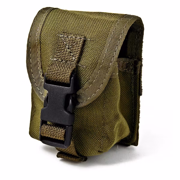 Singel handgranatsficka som enkelt fästs på stridsväst eller bälte med två korta Malice clips som medföljer.