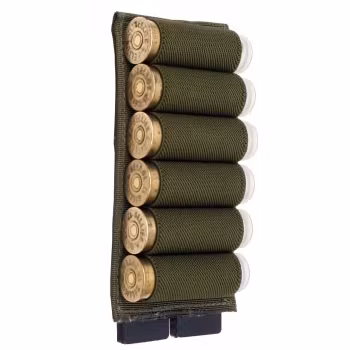 MOLLE ficka för sex hagelpatroner som bärs horisontellt på väst, väska eller benplatta.