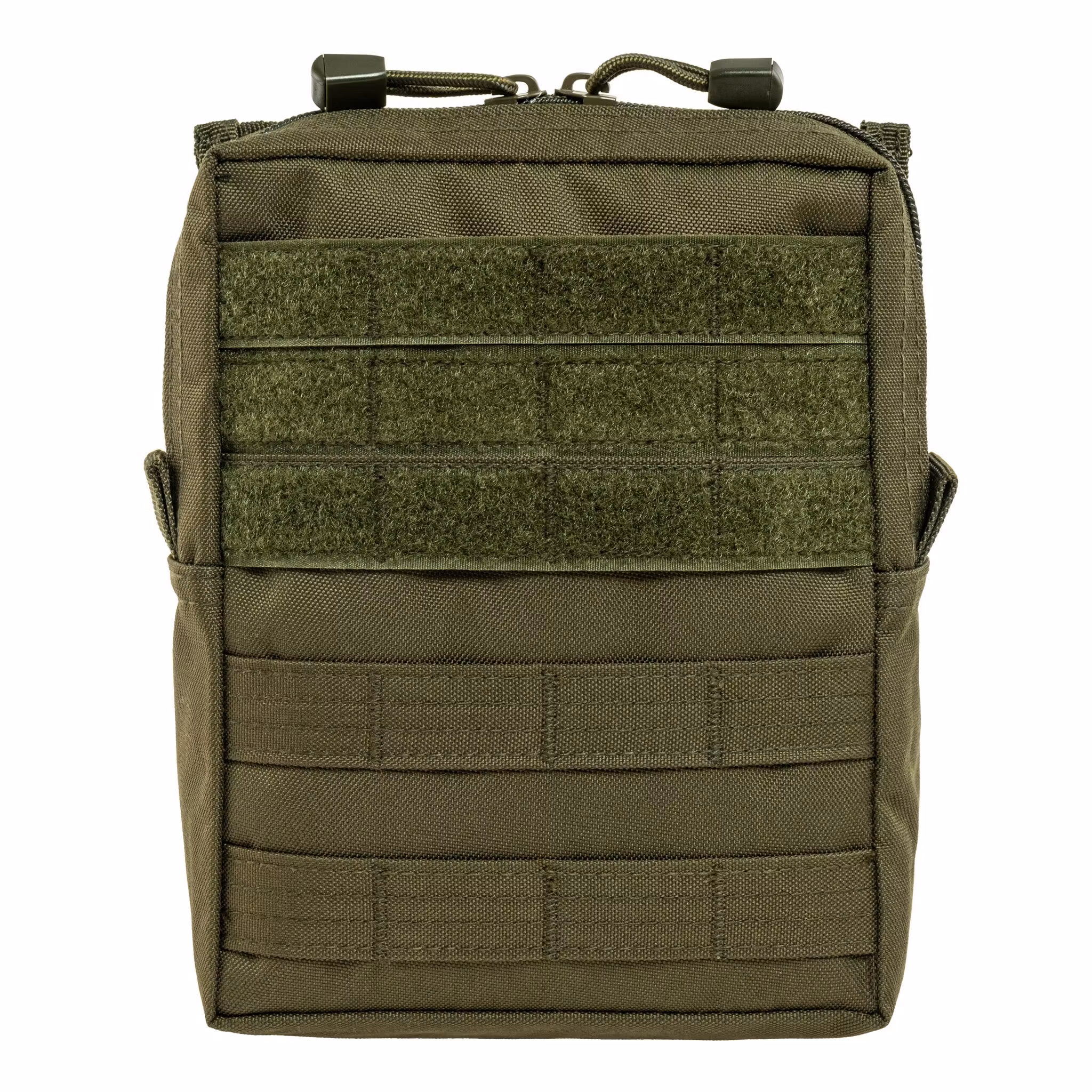 Large universal polyester pocket, attached to the tactical belt. Double zipper, ventilated, elasticized straps and compartment inside, MOLLE system straps and Velcro panel on the front.