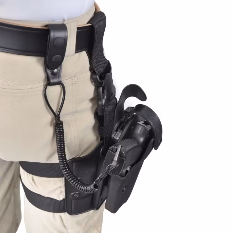 Universal teleskop säkerhetslina, ca 30 cm lång, sträcker sig till 140 cm, säkrar viktiga objekt som nycklar, ficklampor, knivar, vapen m.m. mot stöldförsök och att man skall tappa objektet.