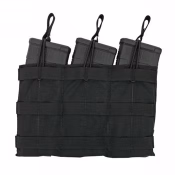 Holds three 30 round 5.56 magazines in flat configuration. Open top design with bungee retention. Attaches to modular webbing with 3 long MALICE CLIPS® (included). Available in Black, Coyote Brown, OD and Ranger Green.