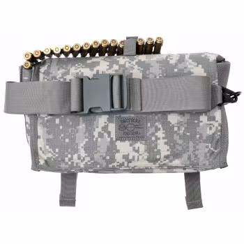 Our 7.62mm Ammo Bag is designed to be used with the M60, M240 or any other weapon that uses 7.62mm linked ammo. Ideal for gun teams, the bag will hold up to 400 rounds of linked ammo. The loops on top of the bag secure the end of the belt and once the team is in place, the bag can supply up to 400 rounds of continuous ammo. Also features a 2" wide carry strap and heavy duty plastic lining to keep the bag's shape and protect the ammunition.