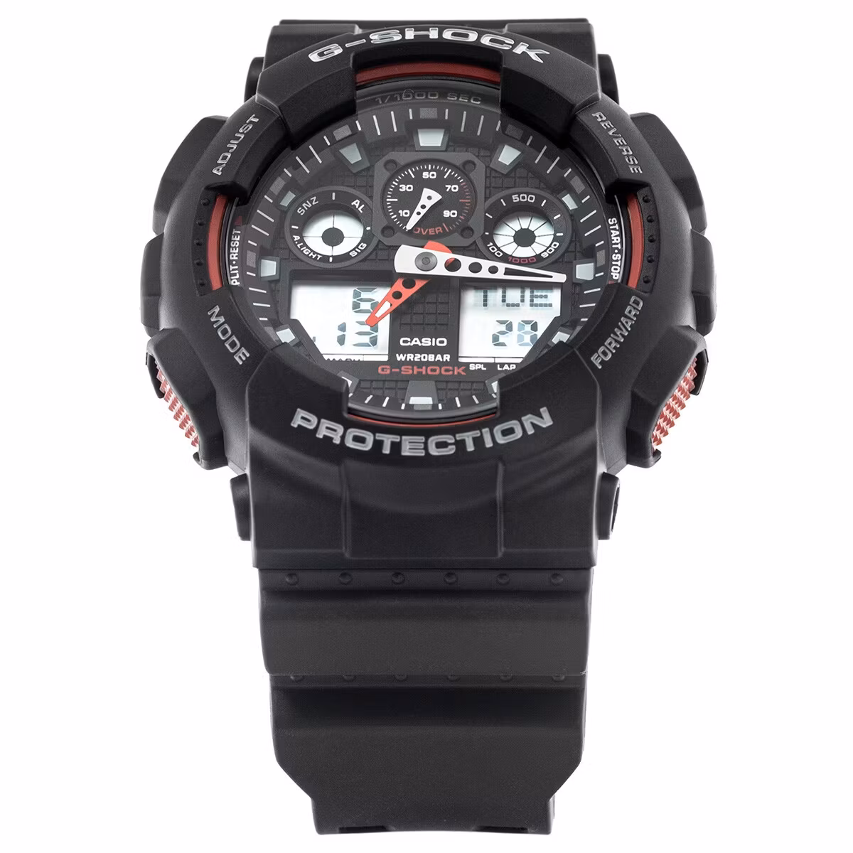 Water-resistant and shockproof sports watch with quartz movement. Equipped with Auto-LED backlight. The hands are coated with a fluorescent Neobrite layer, allowing time to be read in the dark. The analog-digital dial is protected by mineral glass with a Mohs hardness level of 5.