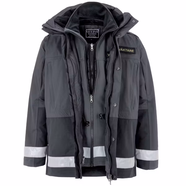 Snygg, varm, vind och vattentät 3-i-1-funktionsjacka med avtagbar och användbar innerjacka i softshell samt en bodywarmer. Softshelljackan är försedd med emblem och reflexer och går därför utmärkt att använda separat med eller utan bodywarmer.
