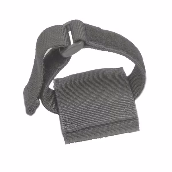 Infästningen har en kardborreförslutning och kan fixeras eller avlägsnas från bältet utan att man behöver ta av bältet.