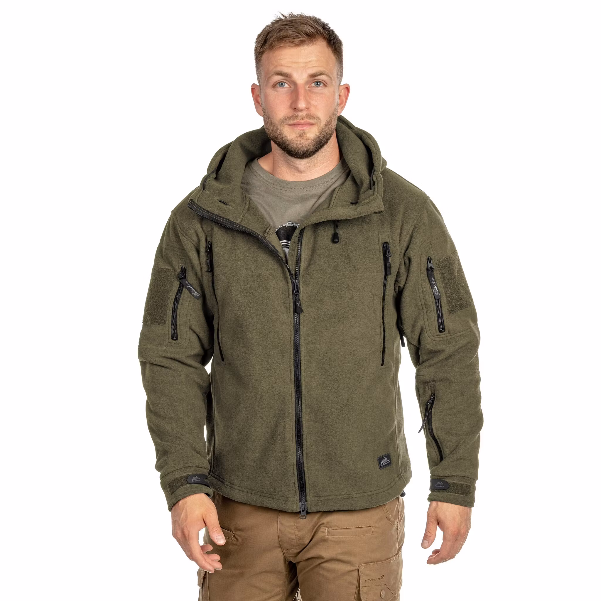 A zip-up fleece jacket in Olive Green that provides thermal insulation in low temperatures while allowing excess heat and moisture generated during physical activity to escape. The Helikon-Tex Patriot is made of high-quality fleece with a weight of 380 g/m2. Thanks to its generous cut, it can be worn over a thinner sweatshirt and additional insulating layers. The back section is slightly extended to protect the kidneys from wind, while the entire jacket remains short enough to allow easy access to pockets and gear carried on the trouser belt.