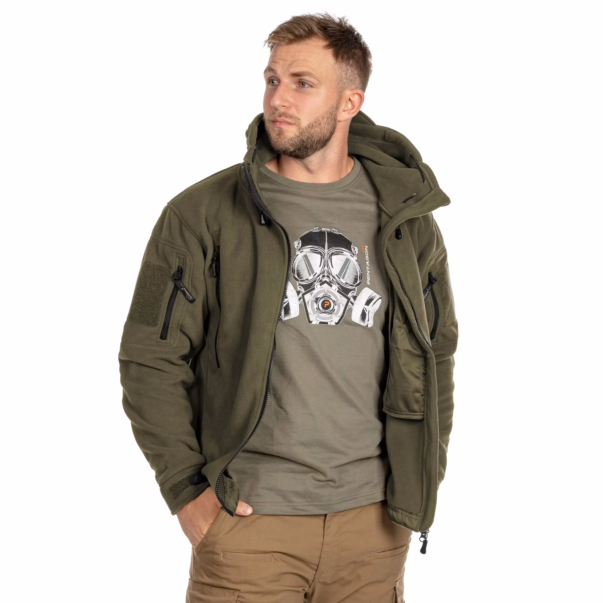 The fleece is made of 100% quick-drying polyester with a weight of 380 g/m2. The material provides a high level of insulation and breathability, allowing excess moisture to escape and preventing body cooling. The fabric is durable and resistant to damage, making the jacket suitable for outdoor activities in rough terrain, whether hiking or performing tactical tasks. The material on the elbows has been additionally reinforced, which increases its resistance to wear.