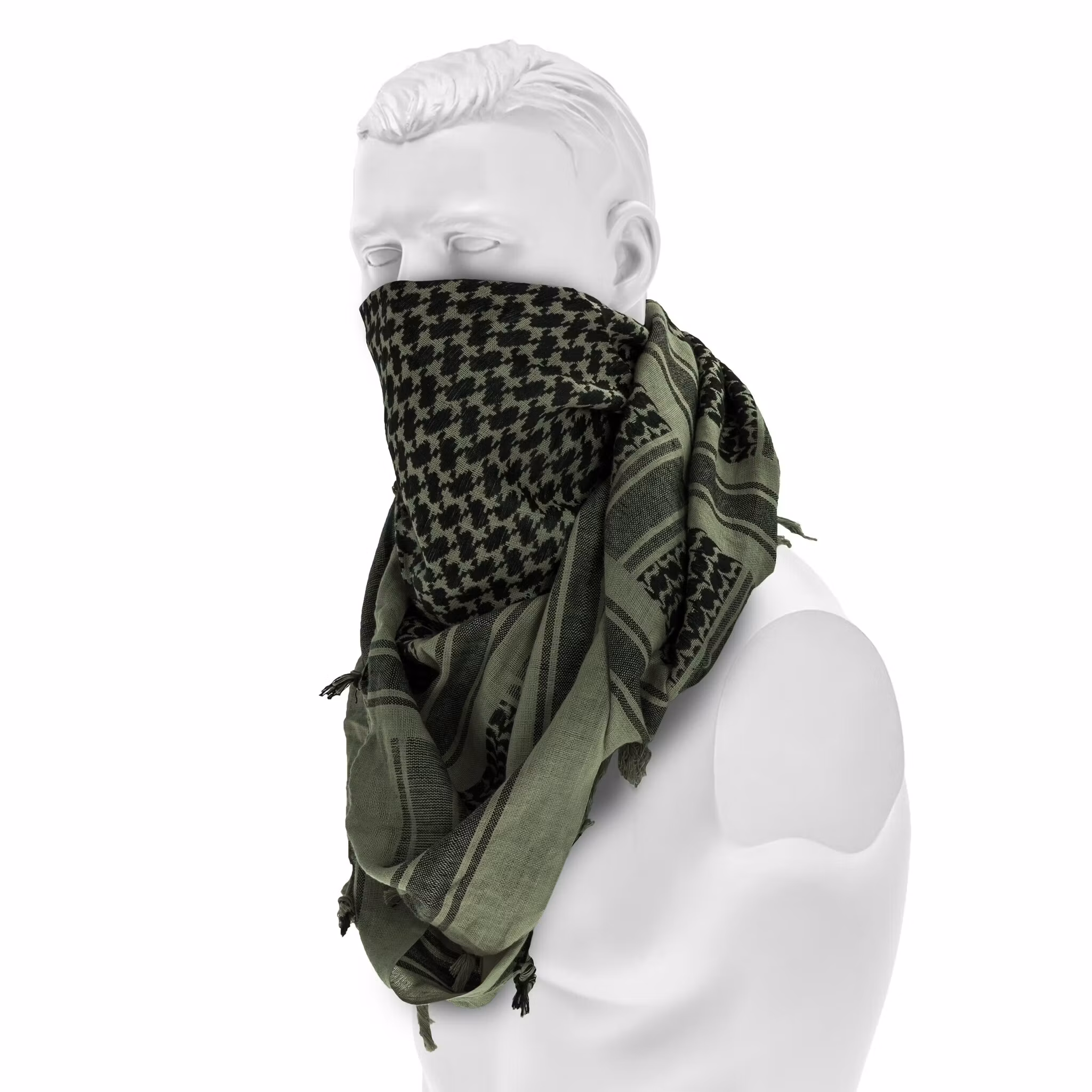 The shemagh can be used in many ways – to protect the head and shoulders from the sun, as a face covering in harsh weather conditions, or as an insulating layer against the cold. Its lightweight construction and large dimensions allow for flexible adaptation to different needs.