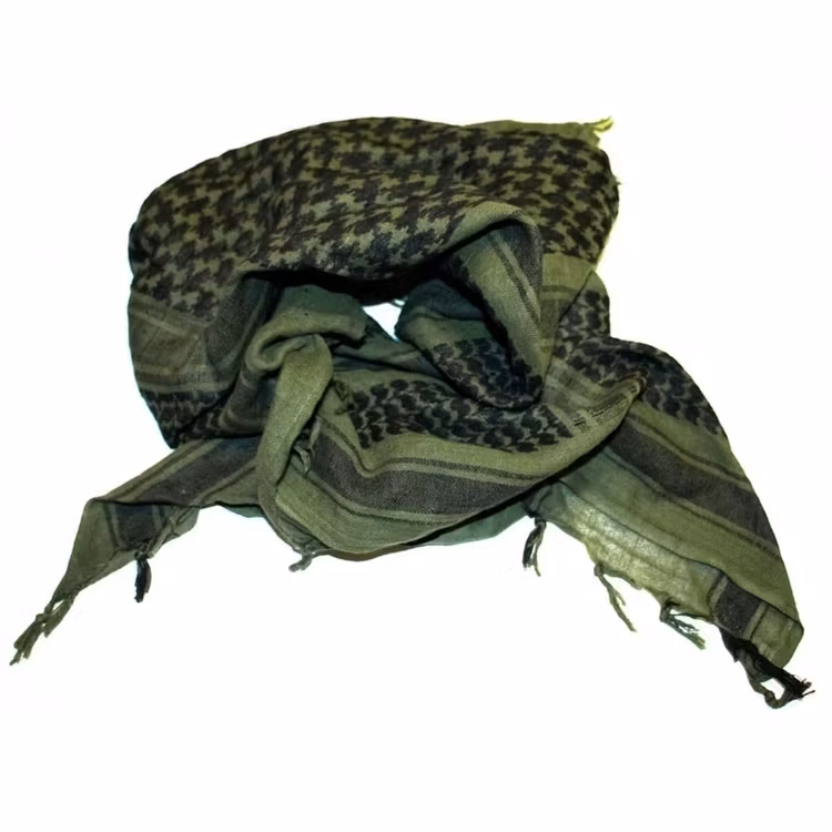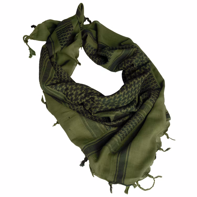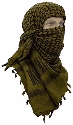 The shemagh, also known as a keffiyeh or arafat scarf, is a traditional Arab scarf – a square piece of fabric, usually cotton, that is folded and wrapped around the head in various ways.