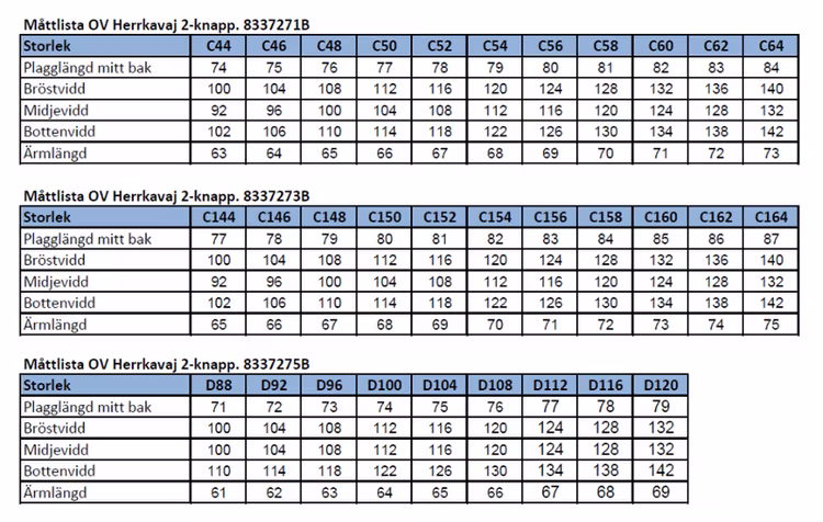 Storlek: C44-C64, C144-C162, D88-D120.
