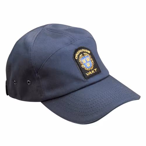 Ordningsvaktskeps försedd med mössemblem. Justerbar med kardborre bak. One size.