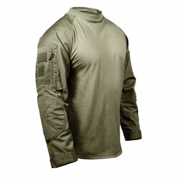 Rothcos Tactical Airsoft Camo Combat Shirt är gjord med lätt tyg och andningsbar funktion. Airsoft-skjortan har många olika hjälpmedel, såsom en skenande turtleneck, glinttejphållare för IR-tejp och förvaringsfickor med blixtlås. Denna taktiska tröja har också anti-nötningsvadderade armbågslappar för extra stöd under en intensiv airsoft-match. Ögla på ärmfickor gör att namn, rang och flagga kan fästas för fullständig anpassning.