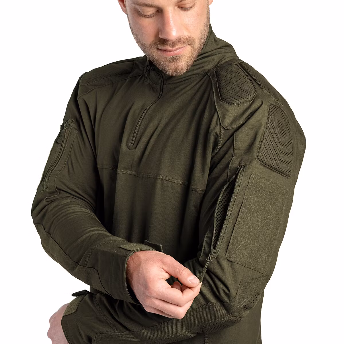 Taktisk stridsskjorta från Mil-Tec med tajt passform och stopping (extra vaddering) vid axlar och armbågar som förhindrar blåmärken och ömhet när man kryper, rullar eller förflyttar sig med hastighet. Populär combat tröja vid airsoft, jakt samt hiking etc.