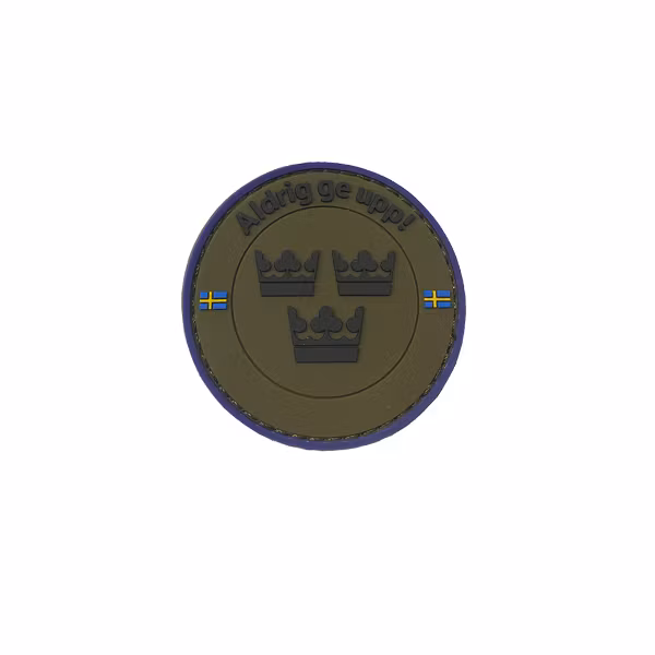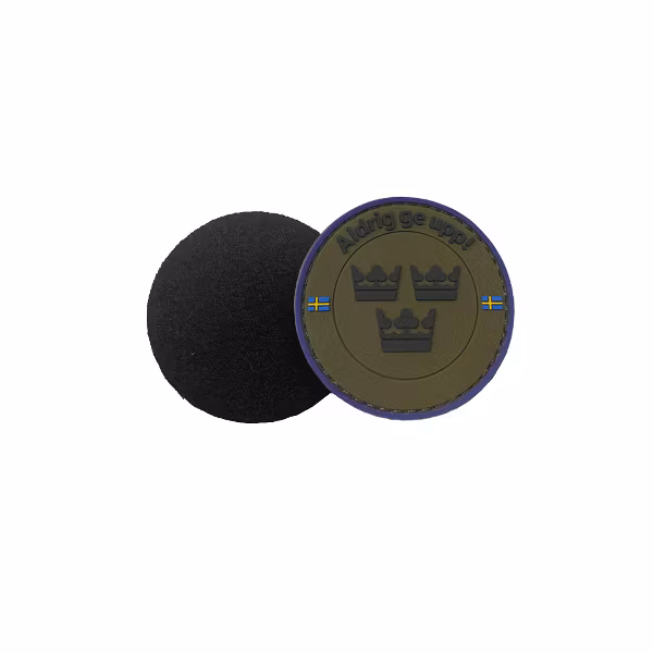 En snygg och stilrent PVC 3D Svensk gummi märke med tre kronor, med kardborre på baksidan.