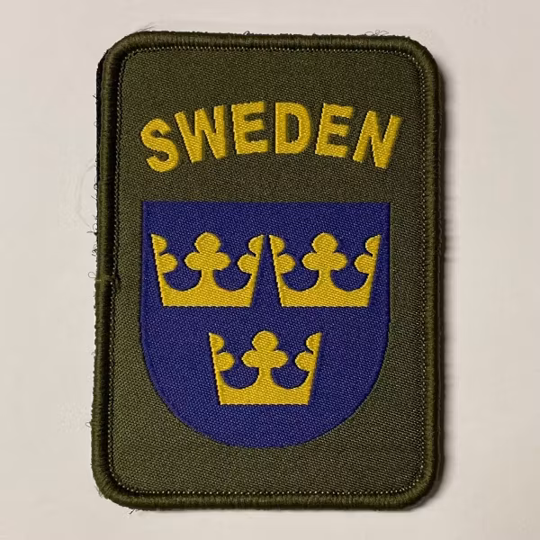 Högsta kvalité svensk tre kronor tygmärke med kardborre. Har en fin grön färg som passar utmärkt till våra M90 kläder. Lätt att fästa med kardborre på baksidan! Mått i cm: 8,5 cm x 6,0 cm