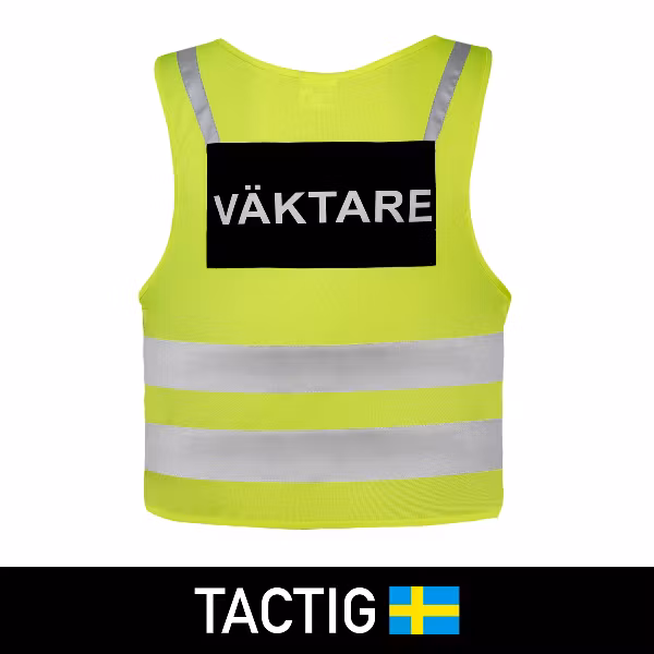 Kortare reflexväst för väktare i populär design från Tactig enligt EN ISO 20471 Klass 1.