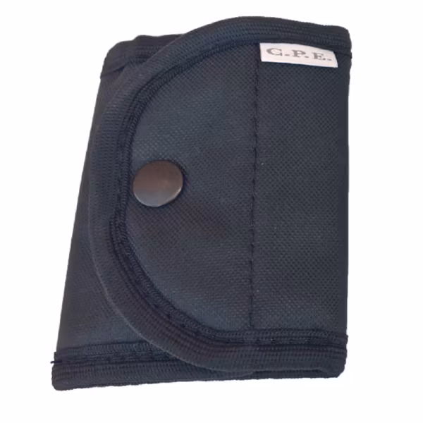 Handskhållare från CPE som håller handskarna lodrätt. Tryckknappsstängning i två olika positioner beroende på hur kraftiga handskarna är. Hållaren har även en liten ficka för exempelvis extra fängselnycklar etc. Hållaren har velcro (kardborre) som man fäster i utrustningsbältet. Smidigt och enkelt att både ta av och sätta på hållaren vid behov.