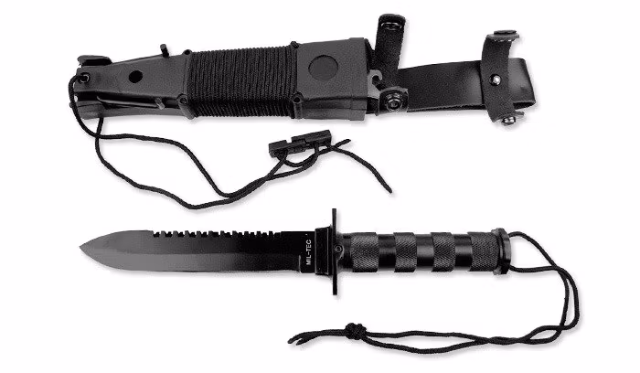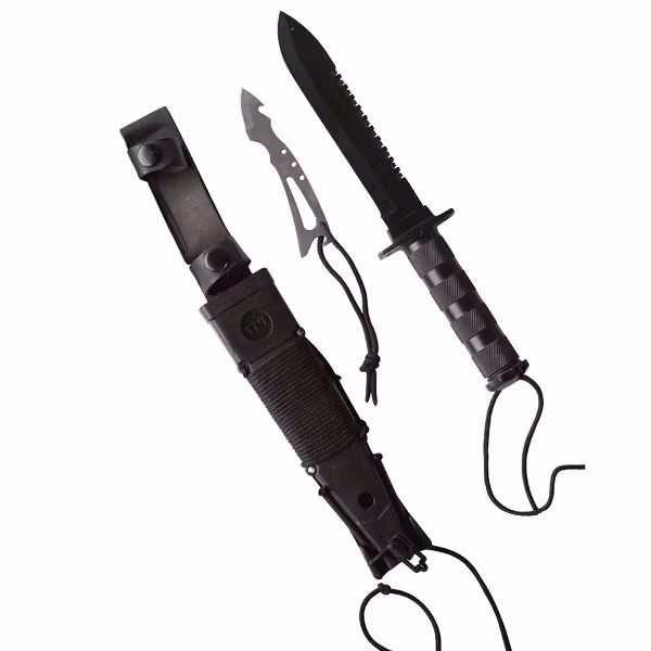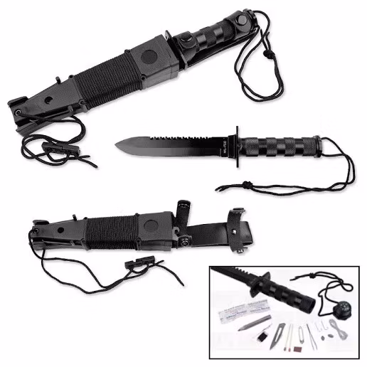 Överlevnadskniv från tyska Mil-Tec med många olika tillbehör. Rekommenderas!!