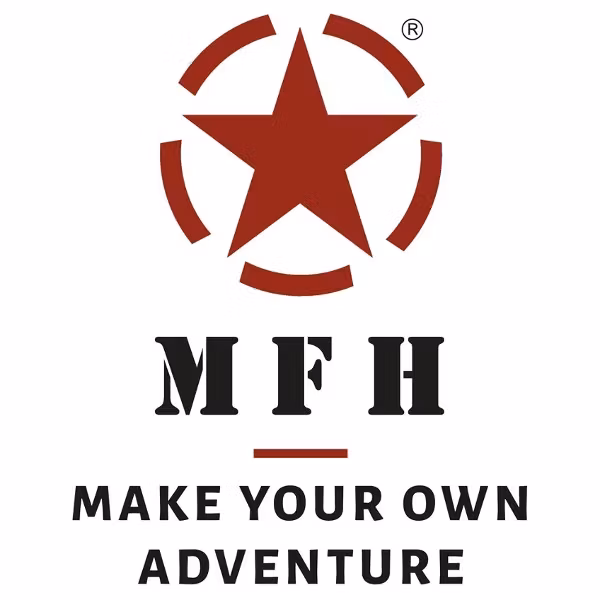 Taktiskt benhölster för pistoler från MFH (Max Fuch). Hölstret är justerbart i djup och har två magasinfickor på sidan och ytterligare en magasinficka på framsidan, alla med snabbspännen och dräneringshål. Hölstret kan fästas på låret genom två justerbara benremmar med snabbspännen.